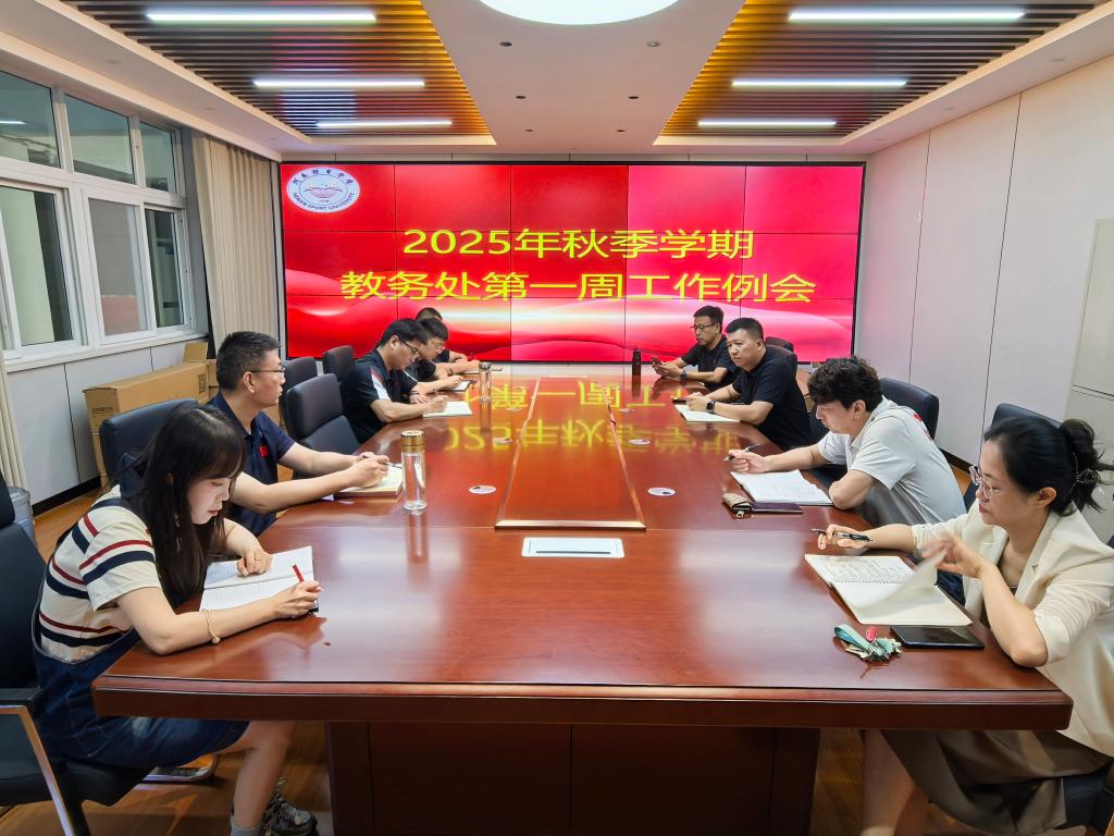 9月9日上午,教务处在综合教学楼督导巡课中心召开2025学年秋季学期第一周工作例会,教务处全体人员参加会议。本次会议旨在全面部署和安排新学期的教学工作,为新学期教学工作平稳开局、有序推进明确方向与路径。