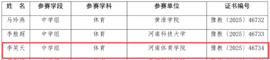近日,河南省第二十三届高等学校师范类专业毕业生教学技能比赛中,体育教育系学子凭借扎实的专业功底、精湛的教学技能与良好的综合素养脱颖而出,斩获佳绩!其中,黄子恒同学荣获一等奖,李笑天同学荣获二等奖,赵沛霖、徐培勇同学荣获三等奖。